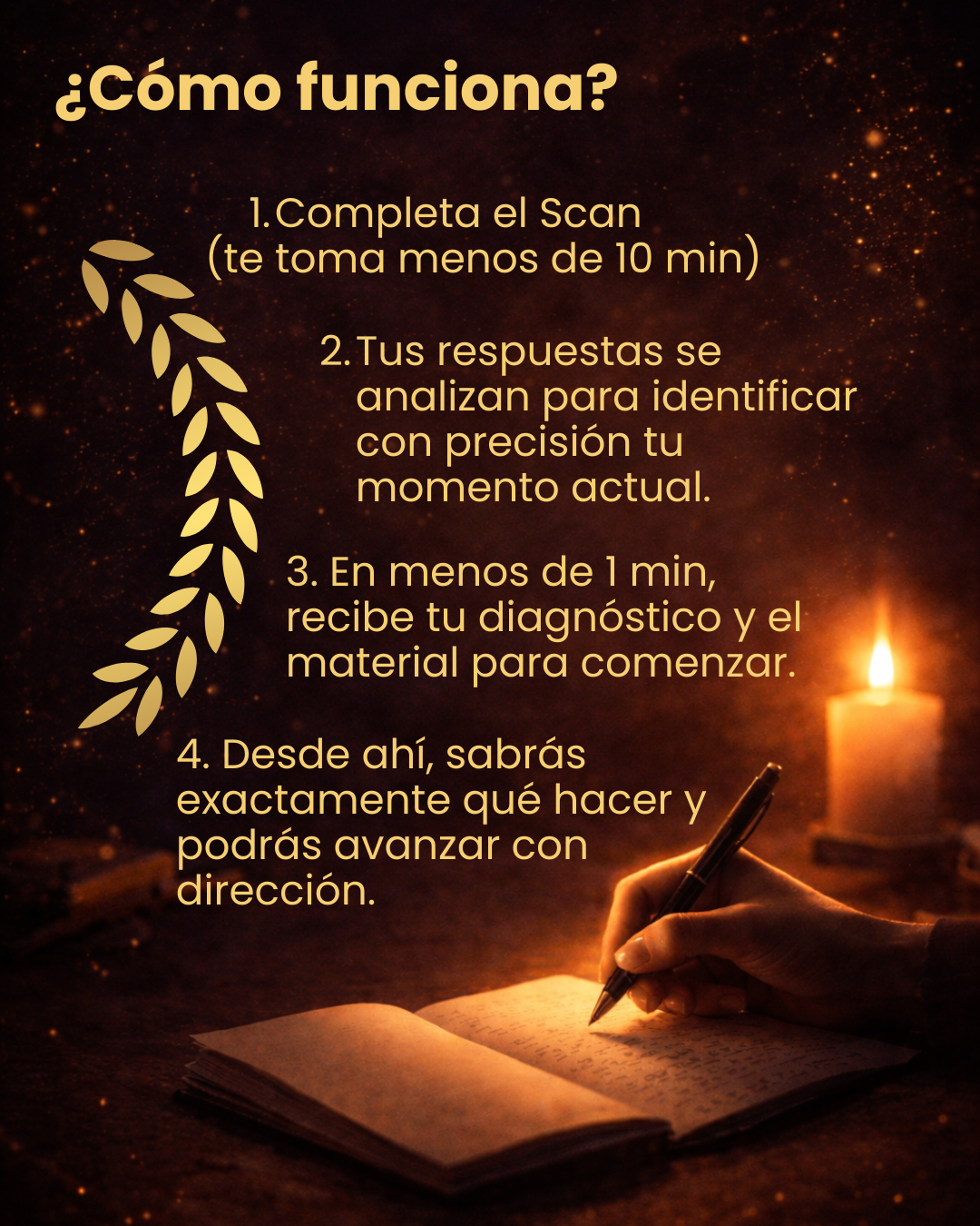 Al completar el Scan, tus respuestas se analizan automáticamente para identificar con precisión tu momento actual: si necesitas estructura, claridad estratégica o una transformación más profunda.